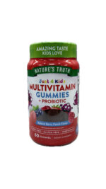 پاستیل مولتی ویتامین و پروبیوتیک نیچرز تریث Natures Truth Just 4 Kids Multivitamin + Probiotic یک مکمل حاوی ویتامین و مینرال است و دارای طعم خوشمزه ای می باشد. این محصول مخصوص کودکان ساخته شده است تا از یک مولتی ویتامین کامل به همراه پروبیوتیک استفاده کنند. این مکمل حاوی ویتامین ها و مینرال هایی مانند ویتامین C، ویتامین D، زینک، پروبیوتیک باسیلوس کواگولانز برای حمایت از کودک شما است.